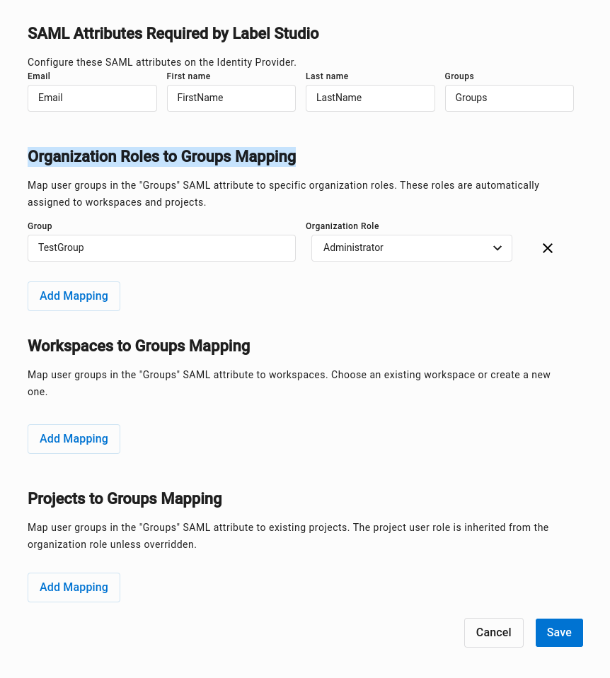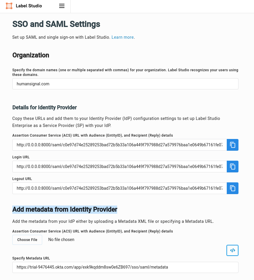 - If you encounter any issues, verify that the SAML attributes and URLs are correctly configured in both Label Studio and Google Admin Console.