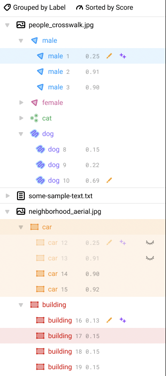 1. Select the labeled region, for example a span, bounding box, image segment, audio region, or other region, on the object or using the Regions sidebar.